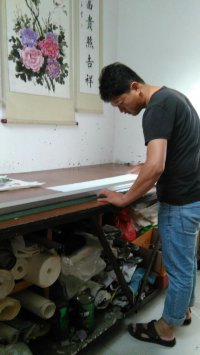 8、 镶料颜色的搭配无固定格式,总的要求是,画心颜色与镶料颜色的搭配,一定要相辅相成,无论是冷色与暖色深色与浅色,或是冷色与冷色、暖色与暖色、深色与深色、浅色与浅色,都要求达到对比与和谐的统一。这样才能处理好画心与镶料的主次关系,达到绿叶(镶料)衬红花(画心)的艺术效果,使装裱的画幅更精美雅致,熠熠生辉。然而,要不断提高装裱水平,仅仅机械地掌握镶料颜色的选配原则,是远远不够的,还应该学习一些绘画的基础知识,了解画面上不同内容的构图以及透视层次、结构比例、重心位置与设色着墨的关系,这对于装裱工作者来说是非常重要的。俗话说:“三分画,七分裱”,要想装裱好一幅成功的作品,除了掌握过硬的操作技能,还需具备一定的理论素养,并用所掌握的理论与实际操作相结合。