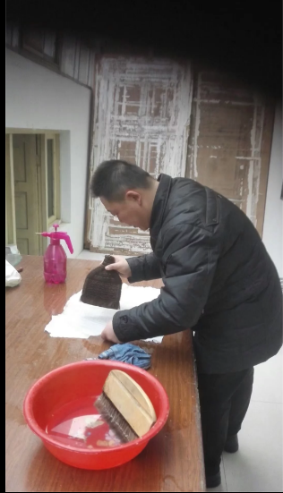 2、历来装裱书画于治糊极为重要,所以《装潢志》专列《治糊》一条。其方法是用花椒熬汤可善气味,轻糁白面,浸透搅匀,入白矾末乳香少许,新水慢火调制成糊,加强粘性。古法还有加入中药除虫菊,百部煎汁和入水内打浆,以防霉蒸虫蛀。根据日本裱画治糊经验,先将面粉内面筋汰脱,取其淀粉,俗称“小粉”,晒干后治糊,可使浆性白净.裱件日久不生霉点,近年又有武汉华中工学院研制出“新型改性高分子粘合剂”,裱画平挺,可无翘曲。