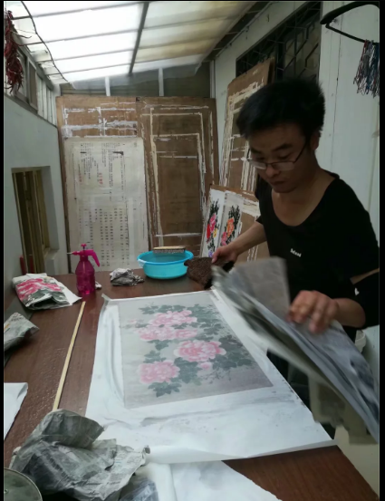 2、如遇天气干燥,可在浆糊内稍加蜂蜜,既有益于画幅平润,装裱后接缝处手感也好,且不易发硬折断。