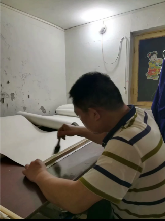 在裱件覆活上墙的最初十个小时里要掸水3—4次,水量要均匀。四周要加贴锔子以免走墙。