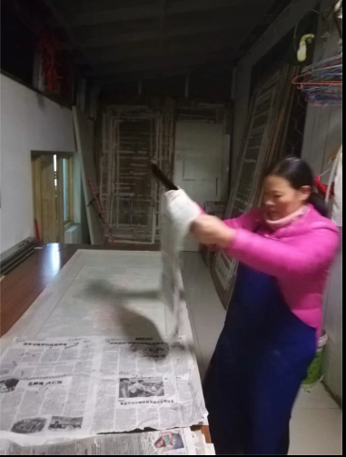覆褙:画心经镶接镶料并方裁整齐后,背面再加托二层生宣纸的过程,叫做覆褙。