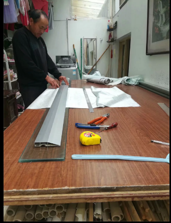 5、平好后,将刷好的覆褙纸刷糨糊一面朝下,端正地搭在裱件背面,用棕刷将覆褙纸覆到菏泽学习装裱作品上,一接一接全部覆好后,再将整个幅面排一遍,一定要排匀、排实。这当中要注意上一接覆褙,即要把上了覆褙的部分裱件掀起来一段,以防止时间过长余边和案子粘在一起。这样,覆褙纸就覆好了。