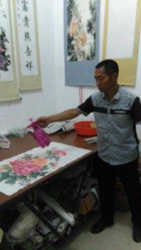 2016年9月4日,欢迎书画装裱培训专业新学员来鹏翔培训中心学习,哈尔滨——李为思,报道,由山东省菏泽市著名的“古裱派”创始人、装裱培训师——卢老师,给字画装裱培训专业新学员讲解:矾纸画心的托法。