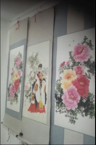 3、镶活的方法:先镶好绫圈,齐边后,再镶料纸天地。料纸天地要预先齐裁方正,并根据所镶绫圈的宽度,在左右两边各加镶l厘米和1.5厘米之间宽的绫绢条,绫绢条的色调要与绫圈的色调相同。半绫镶的料纸部分,下料一定要规矩方正,镶活时,镶口要匀称。不然,则容易使菏泽裱画培训作品的两边不成直线,影响裱件的规矩程度。