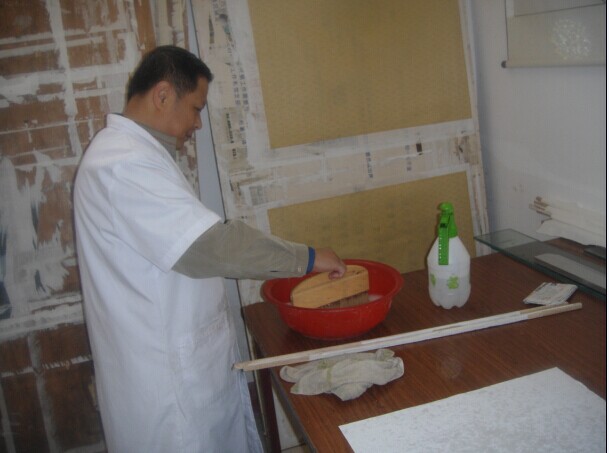 学字画装裱学员“郭玉林”今天下午报到,给学员讲了裱画程序、并让学员学会了托画心以及裁画心。