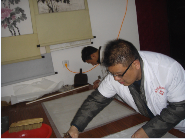 巨幅字画装裱培训作品一般都用干覆法覆褙。